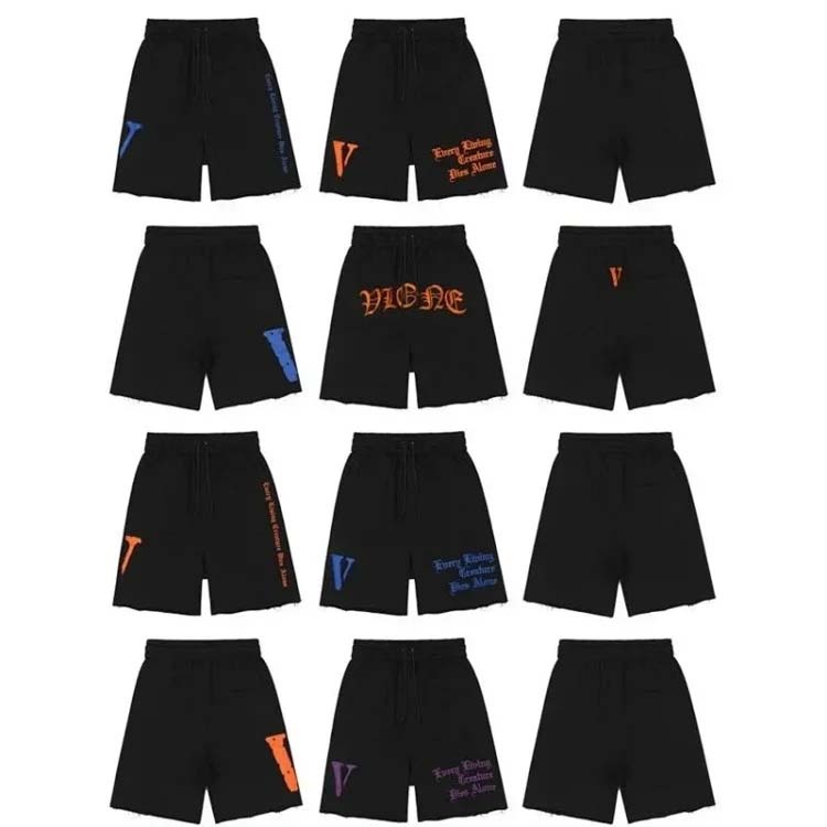 Veron Jerry Big V Letter Print Cotton Terry Casual Shorts-2490